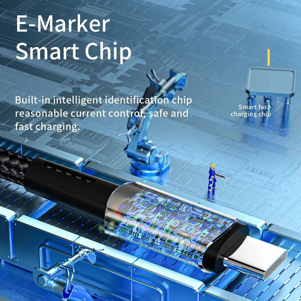 Power up your devices faster than ever with the USB-C to USB-C Charging Cable. This premium cable features fast charging capabilities to juice up your gadgets in record time. The handy LED indicator lets you know when your device is charging properly. Plus, the braided nylon wire and reinforced joint provide superior durability while still maintaining flexibility. Give your tech the speedy power source it deserves.